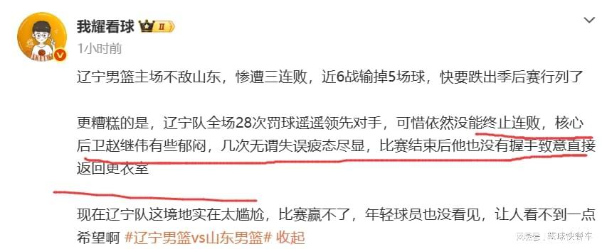 b体育-辽篮三连败被打崩溃?赵继伟赛后拒绝与山东握手:输球又败人品?